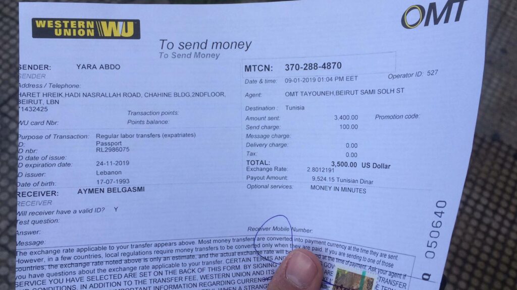 AYMEN BELGASMI — 3,500 دولار — من ، بيروت — السبب المصرّح: “Regular labor transfers”